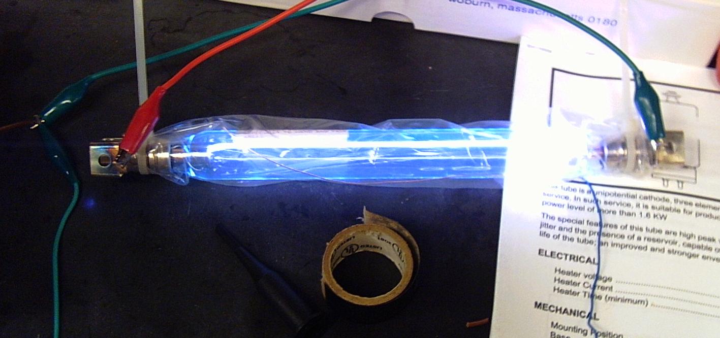 The trigger output is a -520 volt pulse. I connected it to the input of a generic trigger transformer I found on Mouser (1:20 I think). I then externally triggered the lamp with a piece of bare wire against the lamp's envelope, running the length of the arc.