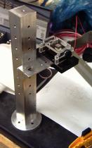 I am still using the same beam splitter assembly from version 2.2, however it is now held on a 1 1/2 inch square post instead of a 1/2 inch threaded rod. I believe this component finally addressed my vibration problems. The post has 1/4 by 20 holes every inch on all four sides, and one on top. I have fabricated three of these things (for the spatial filter, and object illumination lens), and I am so tired of threading holes.