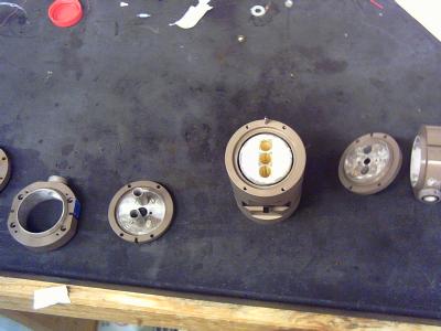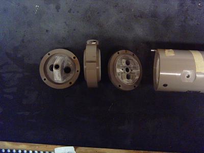 The pump chamber consists of a central cylinder, containing the reflector, and then three pieces which go onto each end, with lots of O-rings. I replaced all the O-rings while I had it apart.