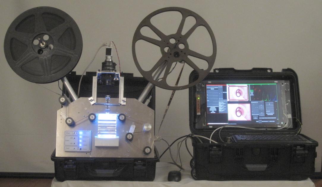 This scanner is also portable, it can go to the film, instead of risking irreplaceable material shipping it to a lab.